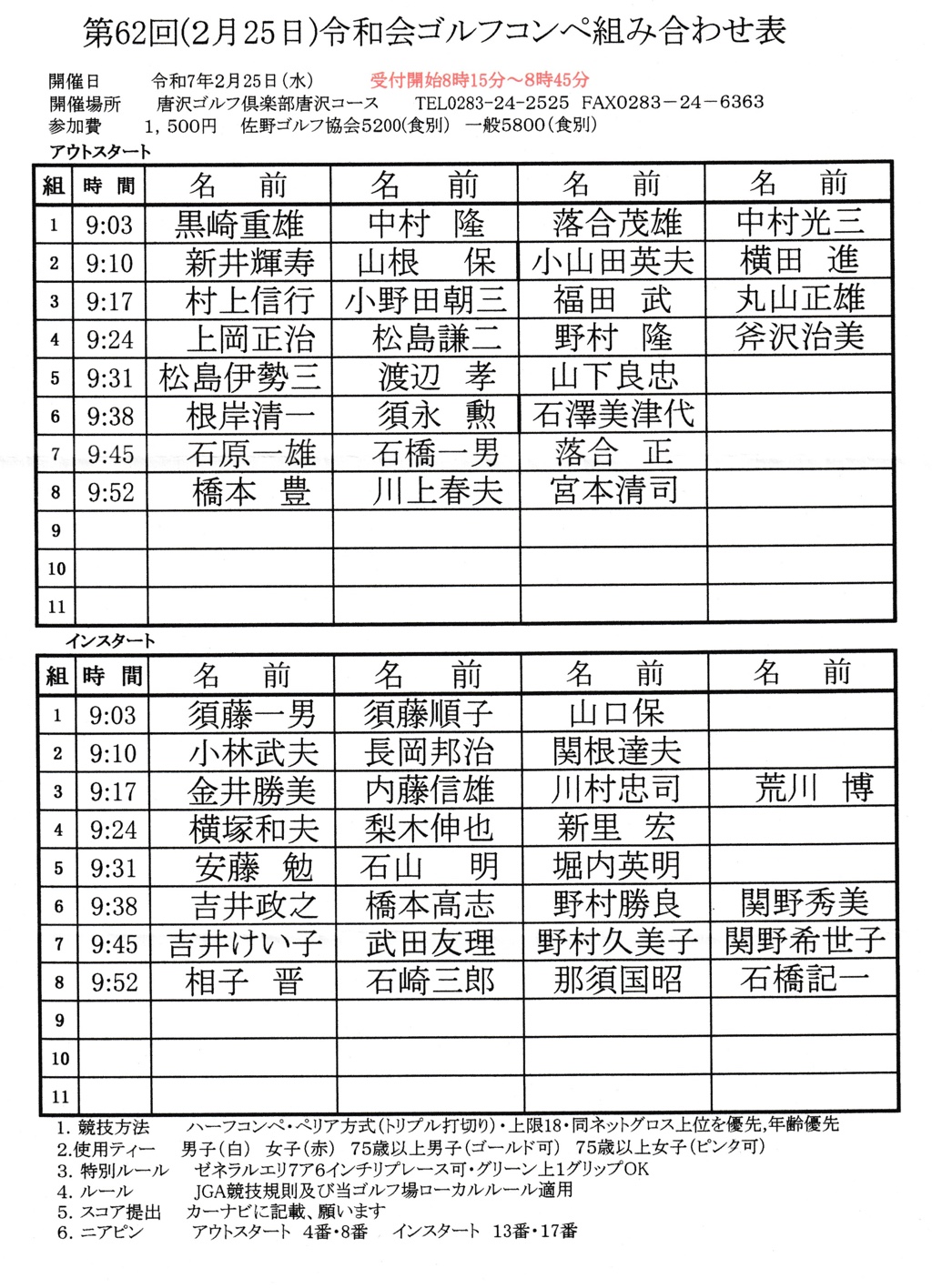 第62回(2/25)令和会・組合せ表 は