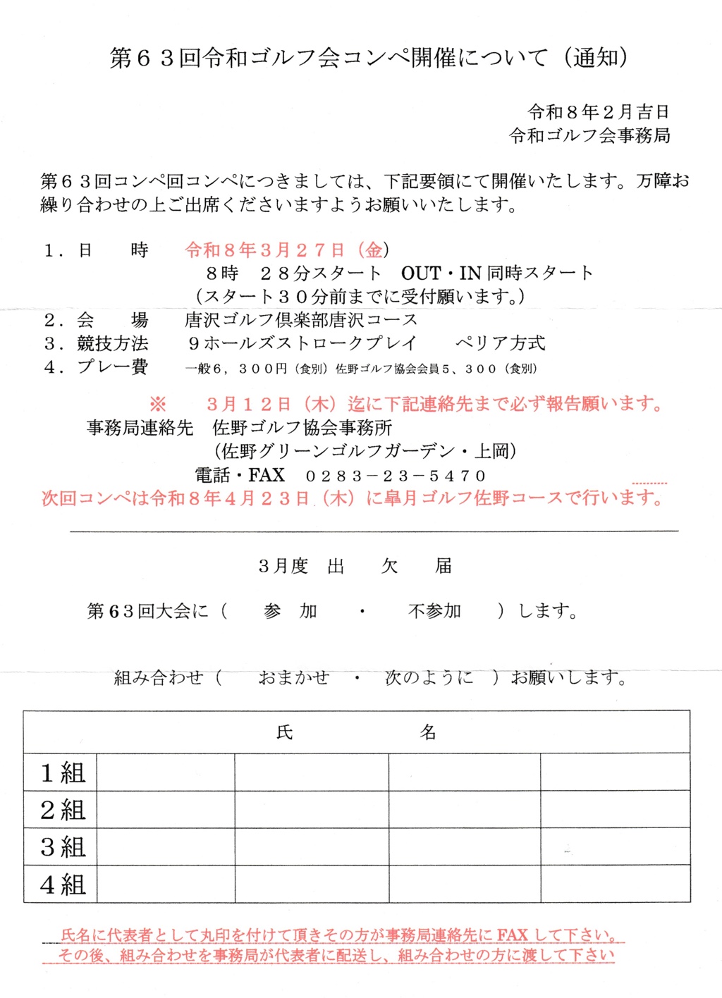 ♧2026♧会員募集♧佐野市ゴルフ協会♧