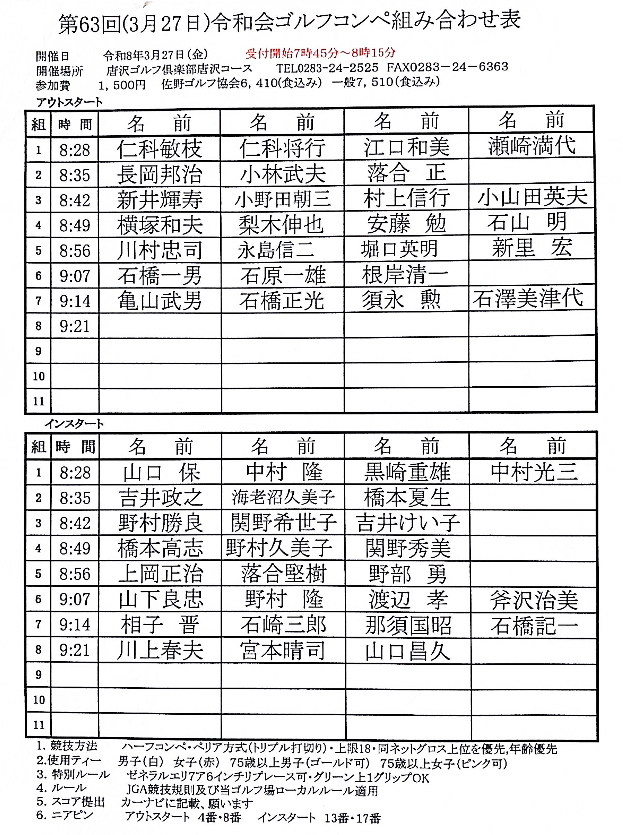 第63回(3/27)令和会・組合せ表 は