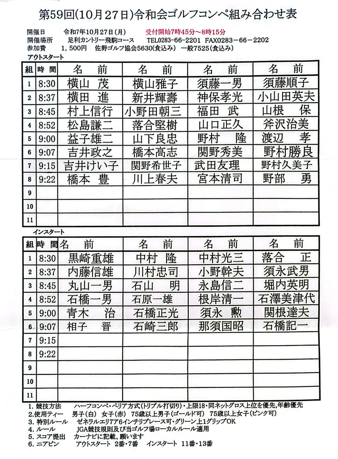 第59回(10/27)令和会・組合せ表 は